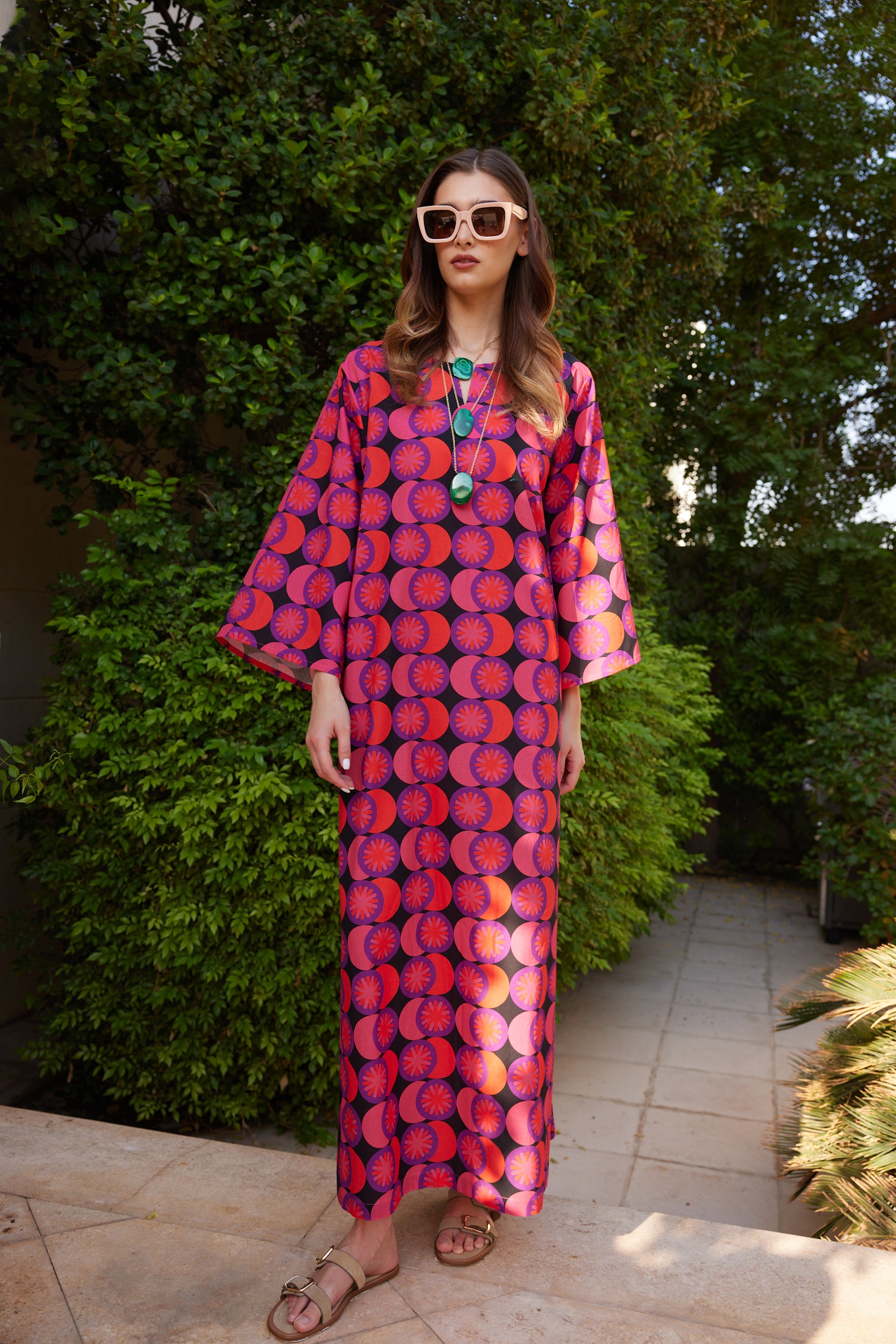 Elevate your everyday wardrobe with the Alya dress. Featuring a custom, multi-colored print that balances playfulness and sophistication, this dress effortlessly combines style and comfort for a truly unique look. Be bold and make a statement with this innovative piece that's perfect for any occasion.